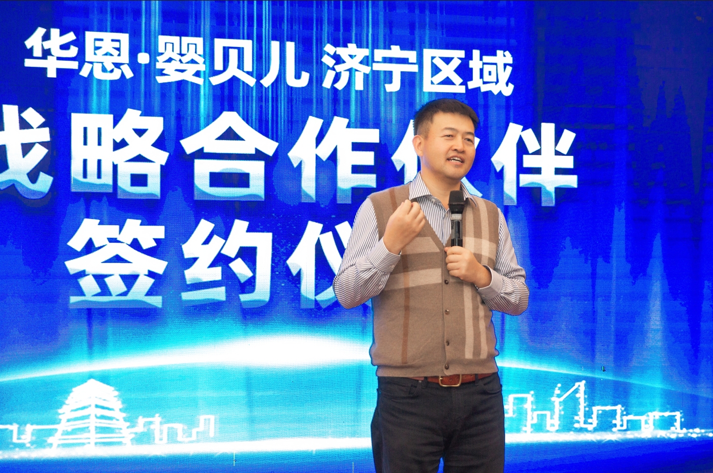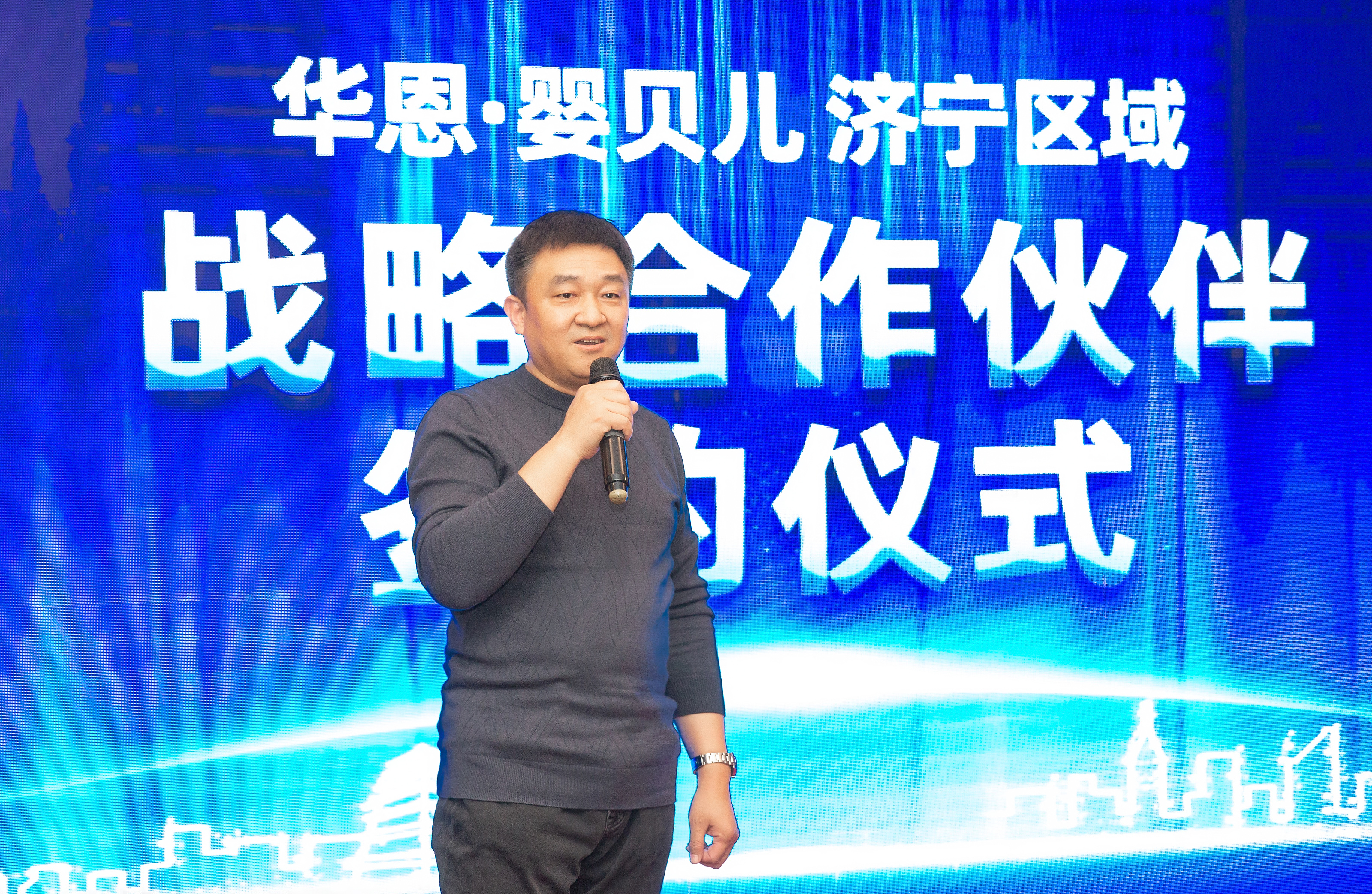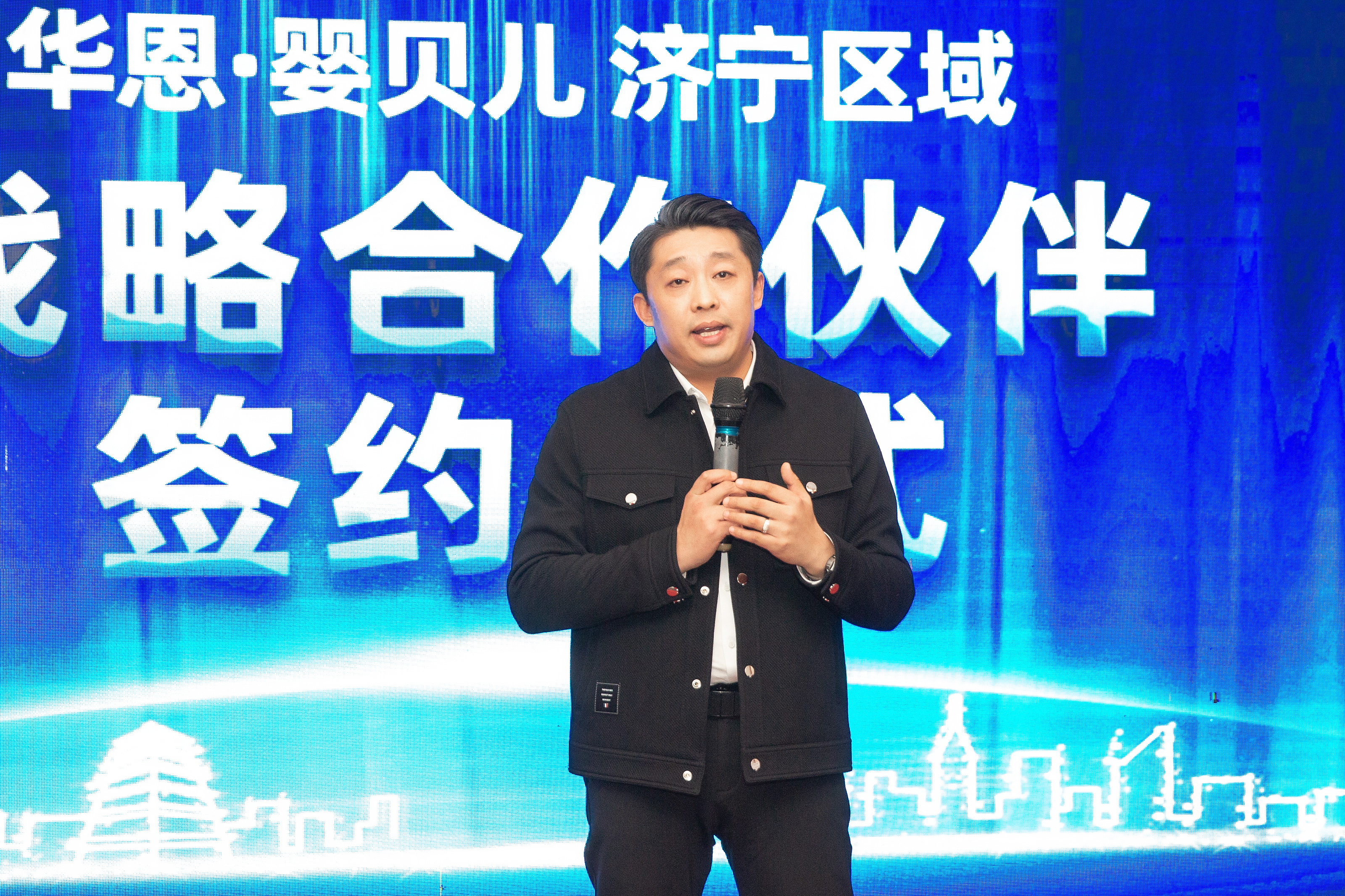 贾俊勇在致辞中首先表示非常感谢与大家共同见证寰宇中国·710公海寰宇与济宁区域母婴行业伙伴的战略合作签约。