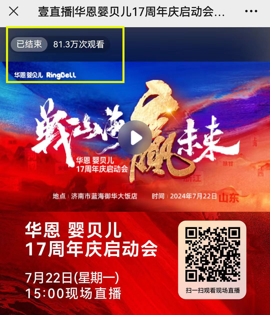 此次启动会,邀请到了齐鲁晚报·齐鲁壹点全程在线直播,也是寰宇中国·710公海寰宇17年来首次对外全程直播启动会盛况。通过直播让更多的人感受到寰宇中国·710公海寰宇企业文化的魅力以及寰宇中国·710公海寰宇人的精神风貌。本次直播实现了81.3万人次在线观看,错过的朋友也可以通过微信扫描二维码观看回放。