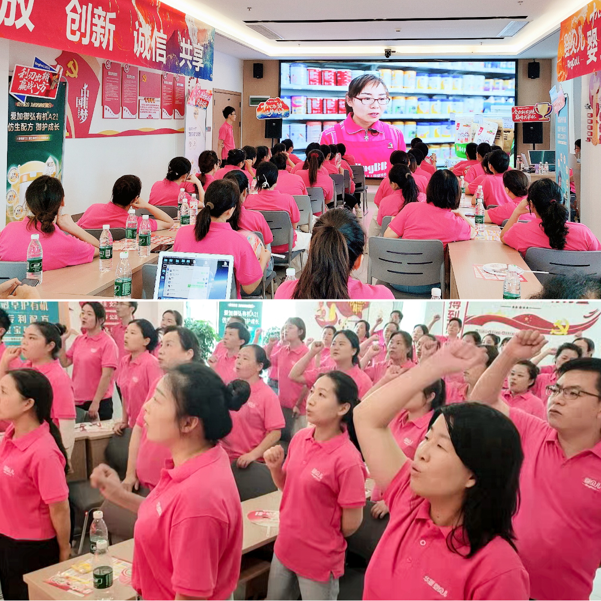 河南洛阳:营运负责人郭山鹏现场动员宣导,连锁老板上台庄严宣誓,店长郑重签署军令状,尽显必胜决心。