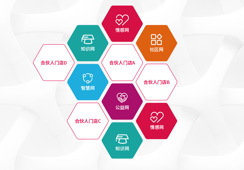 通过“智慧、知识、情感、社区、公益”五张网的搭建,让科技赋能中国·710公海寰宇,并以专业服务赢得信赖,同时实现中国·710公海寰宇与社区、会员和公益的链接,让合伙人在赚钱的同时,更能省心、受尊重。